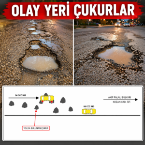 21 Mart 2026 tarihinde saat 21.20 sıralarında yaşanan olayda, seyir halindeki 06 CCC 583 plakalı araç sürücü yol üzerindeki derin çukurları fark edemeyerek ani düşme sonucu zarar gördü. Aynı saatlerde bölgede başka araçların da benzer şekilde hasar aldığı öğrenildi.