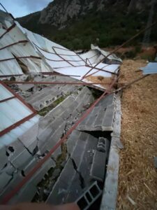 Kısa sürede etkili olan fırtınada Zeyni Gebenli’ye ait bir ahır tamamen yıkıldı. Ahırın çatısı uçarken, duvarlar da rüzgârın şiddetine dayanamayarak çöktü. Olayda can kaybı yaşanmaması sevindirici olurken, maddi zarar büyük.